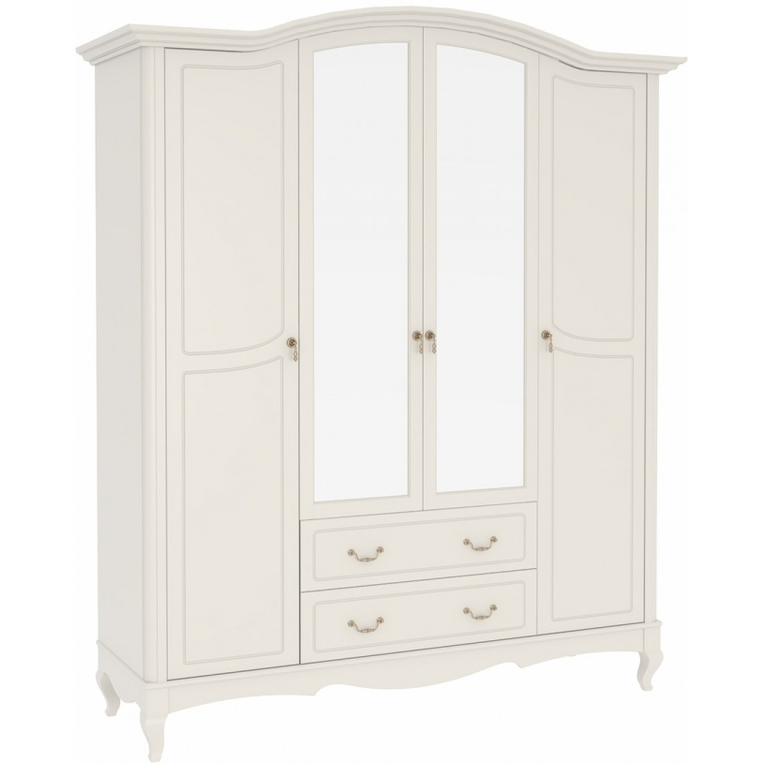 Четырехстворчатый шкаф для одежды с зеркалом Тиффани 4D2S крем вудлайн