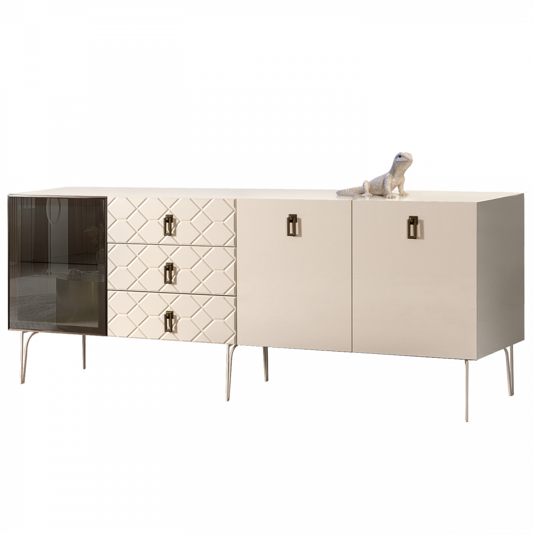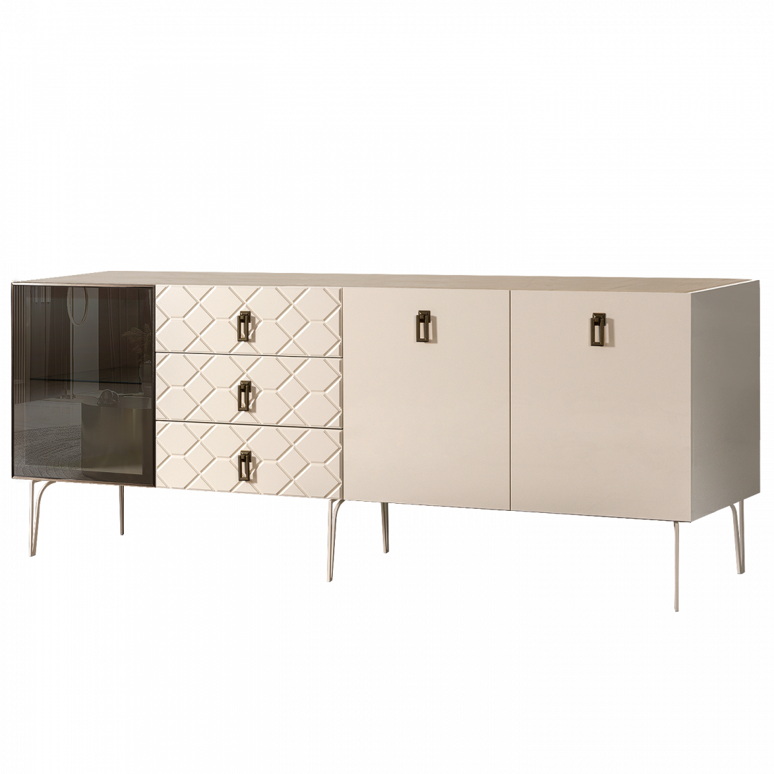 Стекло Stopsol меняет свои отражающие свойства под воздействием источников света. Поверхность, отражающая свет, мягко скроет содержимое вашего комода или витрины.