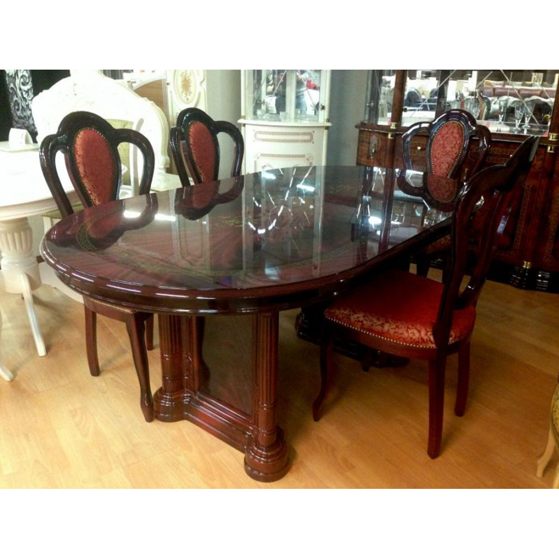 Обеденный стол раздвижной Роза (могано) от фабрики ДИА мебель- выполнен в классическом стиле. Цвет могано в сочетании с глянцевым покрытием придаст вашей гостиной больше элегантности и эстетичности. Такой раздвижной стол не займет много места и будет незаменим в вашей гостиной. Большие и прочные ножки делают его неподвижным и соответственно устойчивым.