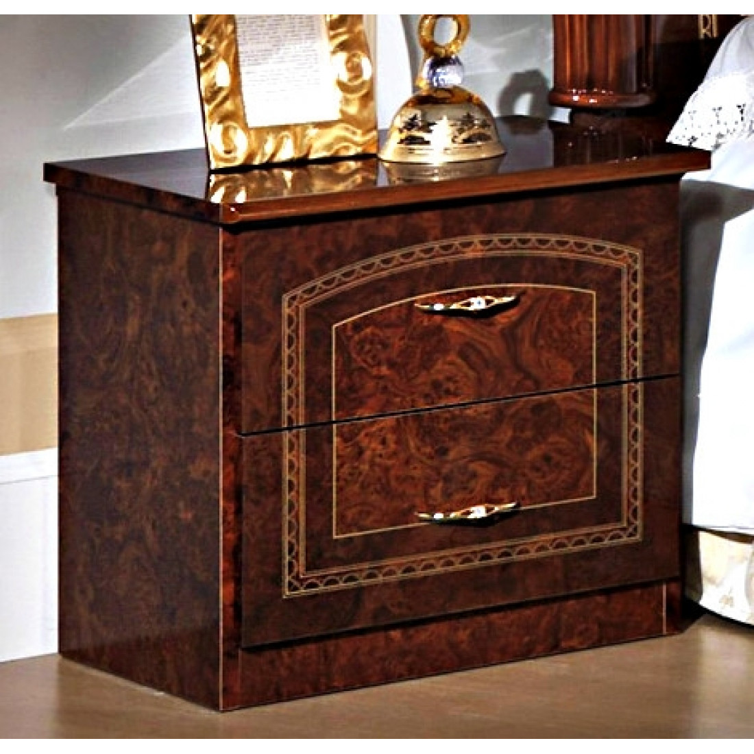Прикроватная тумба Ирина (орех) от Российской фабрики «ДИА мебель» выполнена в ореховом цвете в сочетании с глянцевым покрытием. Она не займет много места даже в маленькой спальне. Такая маленькая и универсальная тумба поможет вам всегда держать не обходимые вещи под рукой. Коллекция "Ирина" предназначена для настоящих ценителей классического стиля.