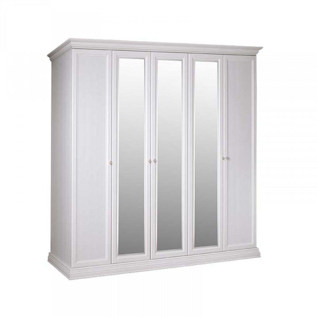 Пятидверный шкаф с зеркалами для платья и белья АМШ1/5 изготовлен из ламинированной плиты Эггер (Австрия), а также плиты совместного итальянско-российского производства «Карелия ДСП», являющегося лучшим в России производителем мебельных плит, и покрыт итальянским лаком превосходного качества.