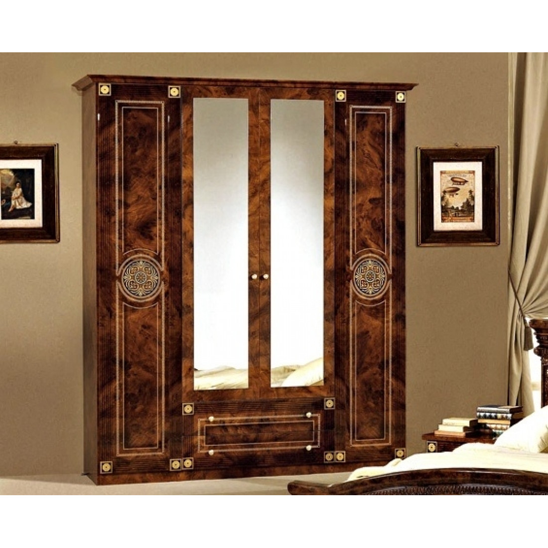 Спальня Рома (орех) от Российской фабрики «ДИА мебель» выполнена в строгом, классическом стиле. Ореховый цвет в сочетании с глянцевым покрытием придает элегантность. Такая спальня поможет Вам окунуться в атмосферу роскоши и комфорта. Безшумные и плавно закрывающиеся дверцы шкафа и комода помогут с легкостью забыть о шуме по утрам. Вся коллекция "Рома" предназначена только для истинных ценителей элегантного классического стиля.