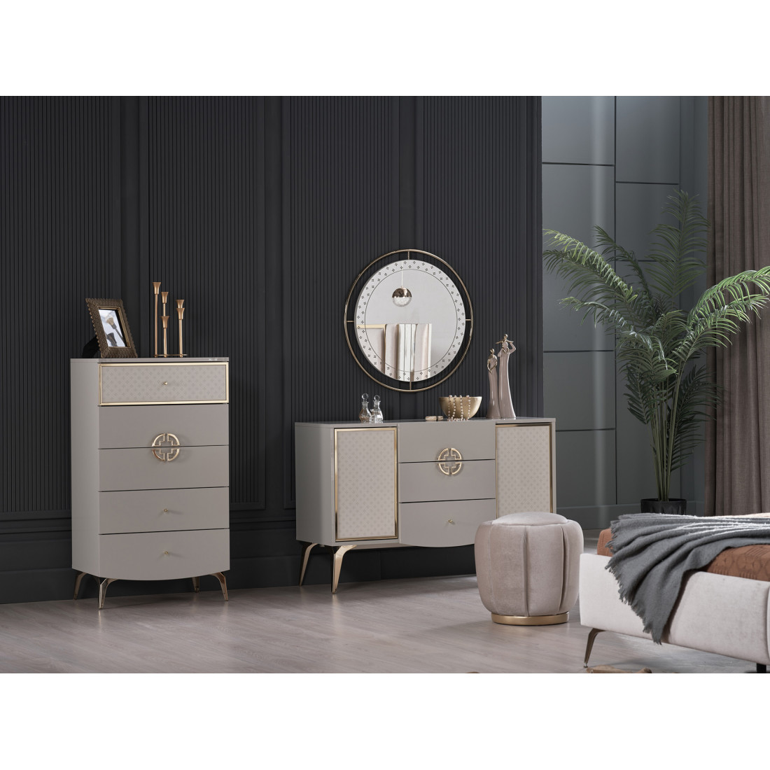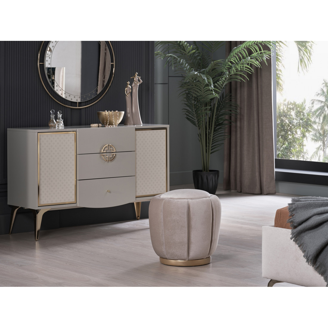 В туалетном столике Валеско используется стеклянный узор в стиле АРТ-ДЕКО и система открывания push-to-open