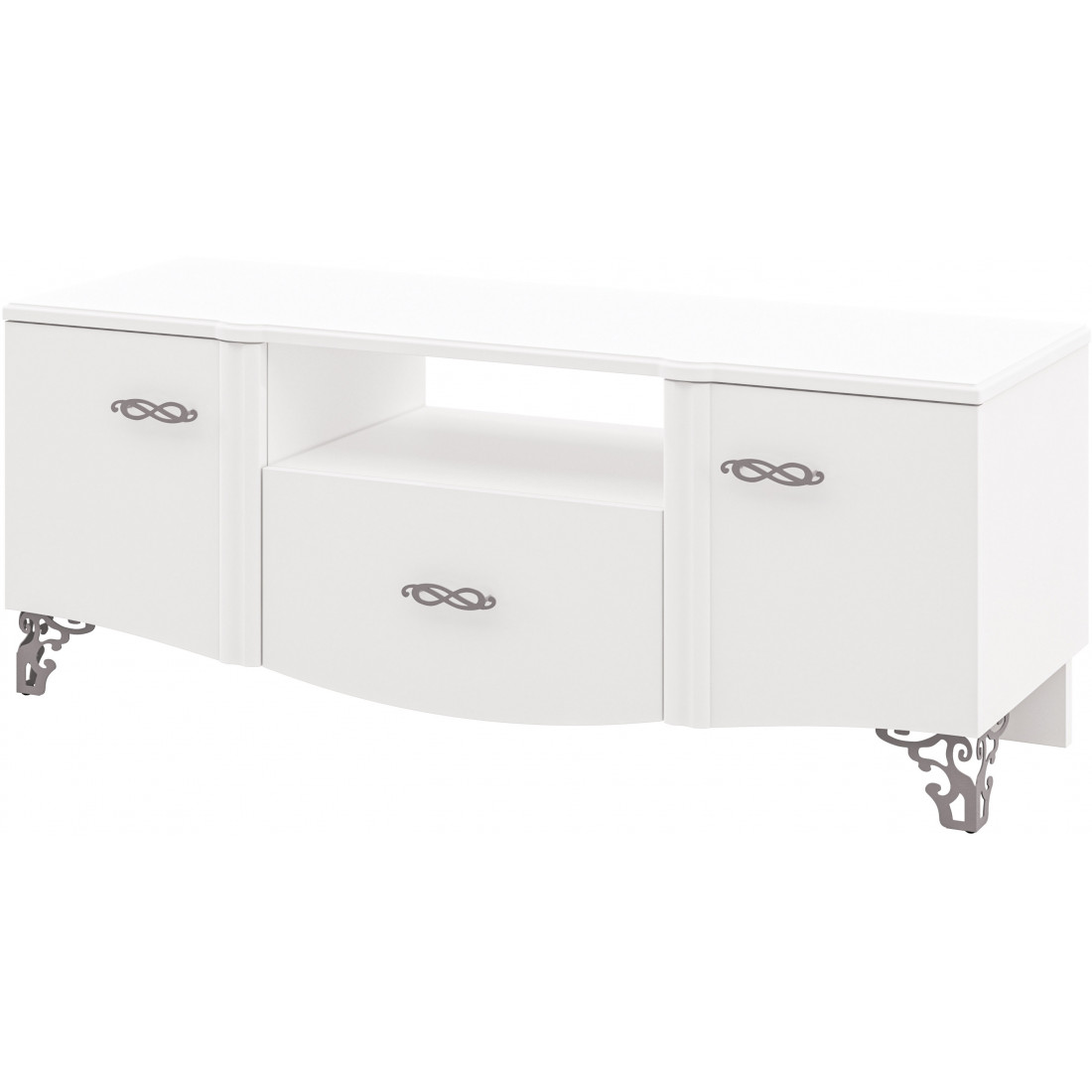 Тумба под телевизор в гостиную МН-025-16 серии София фабрики Мебель-Неман (Белоруссия) – гармоничное сочетание ультрасовременной лаконичности и изящества классических пропорций. Нежный кремовый оттенок глянца в сочетании с хромированным ажуром ручек и легких изящных ножек смотрится свежо и необычно. Купить классическую тумбу под телевизор София можно по доступной цене.
